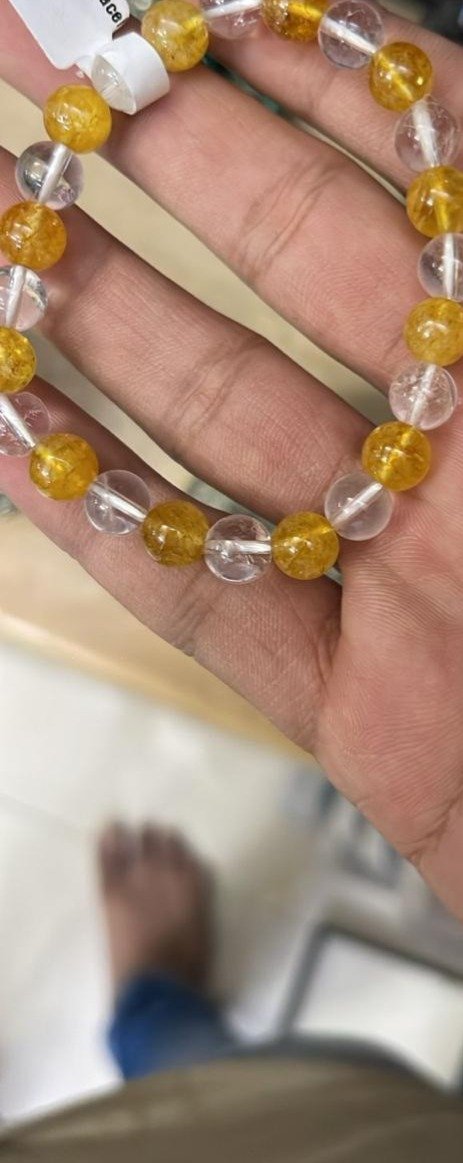 The clear quartz and citrine combination looks absolutely beautiful. The bracelet feels lightweight and very comfortable. I’ve been wearing it daily without any issues.